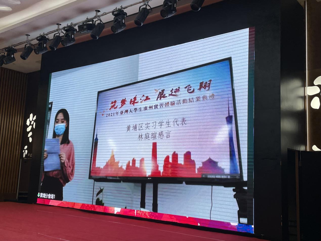 2021年8月27日,為期兩個月的“筑夢珠江展翅飛翔——2021年臺灣大學生廣州實習體驗活動”在廣州圓滿結束,實習活動結業(yè)典禮通過視頻連線方式舉行,主會場設在廣州市臺灣青年創(chuàng)新創(chuàng)業(yè)服務中心,南沙區(qū)、黃埔區(qū)臺灣青年創(chuàng)新創(chuàng)業(yè)中心和天河人才港設置分會場。