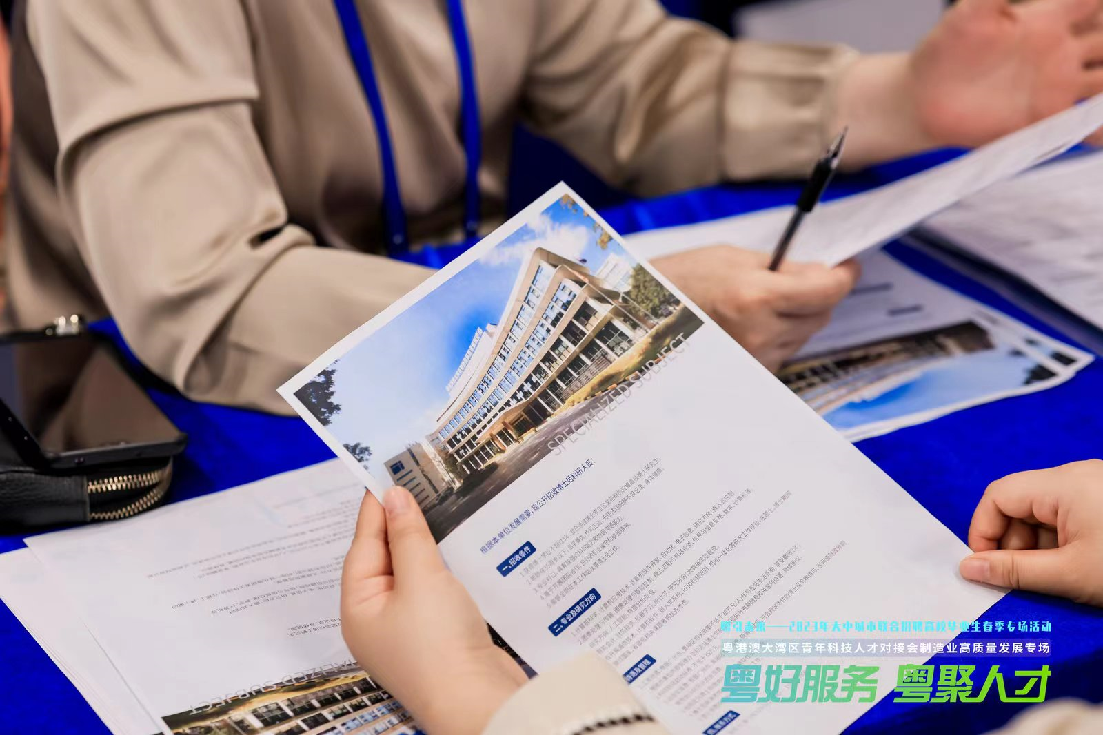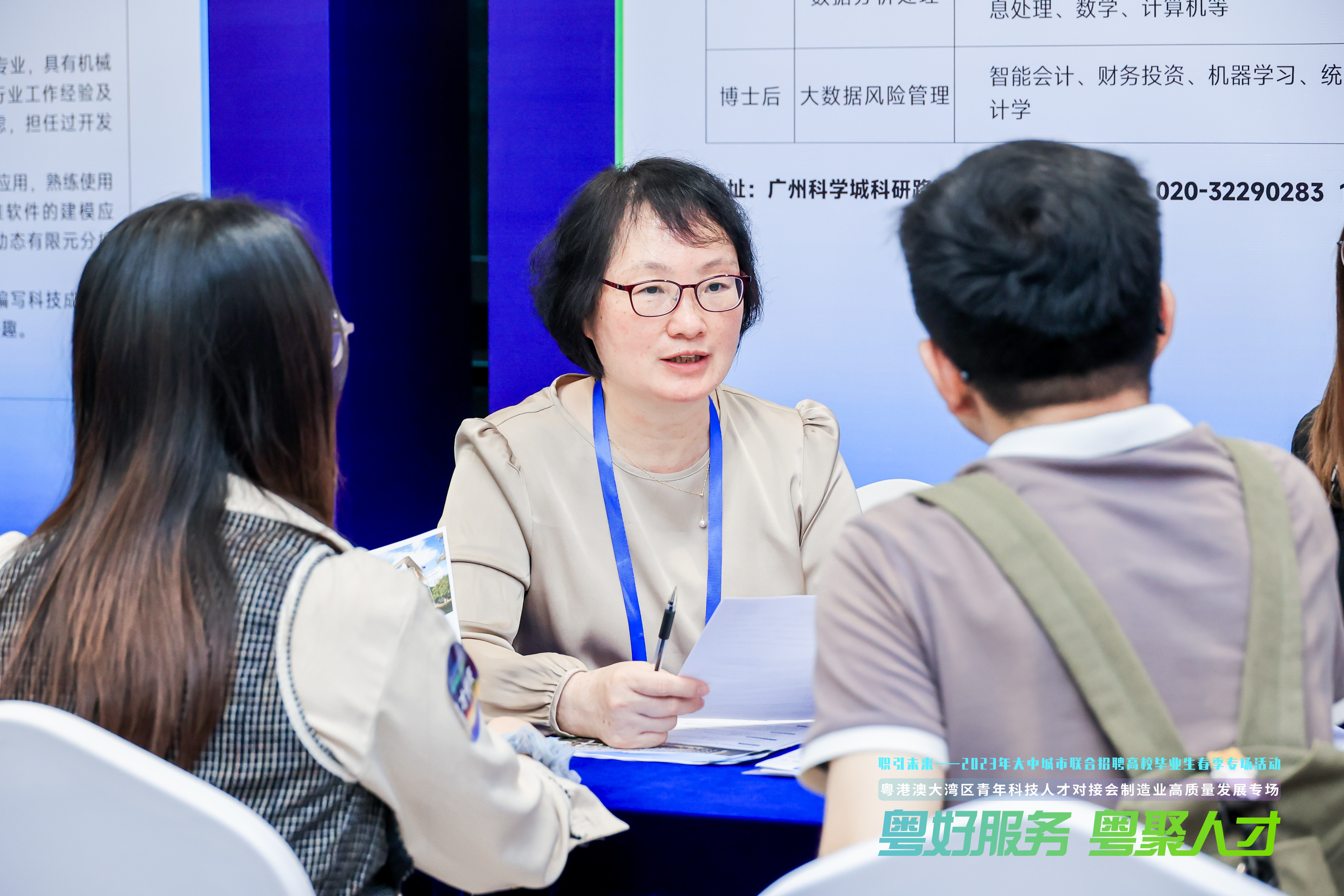 本次活動(dòng)現(xiàn)場設(shè)置了宣講推介區(qū)、引薦洽談區(qū)和政策展示區(qū)。舉辦單位配置的人才服務(wù)專員,精準(zhǔn)高效引薦碩博人才與需求單位開展洽談。楊秋虹副董事長領(lǐng)隊(duì)與前來交流的碩博求職人才進(jìn)行初步洽談,明確公司招聘需求,了解人才情況,進(jìn)行初步意向?qū)印R幻猩酱髮W(xué)應(yīng)屆博士人才的條件基本符合公司進(jìn)站博士后招聘要求,經(jīng)雙方選擇,達(dá)成進(jìn)一步面試意向,并確定于近期內(nèi)該名博士前來公司面試,再行深度溝通。