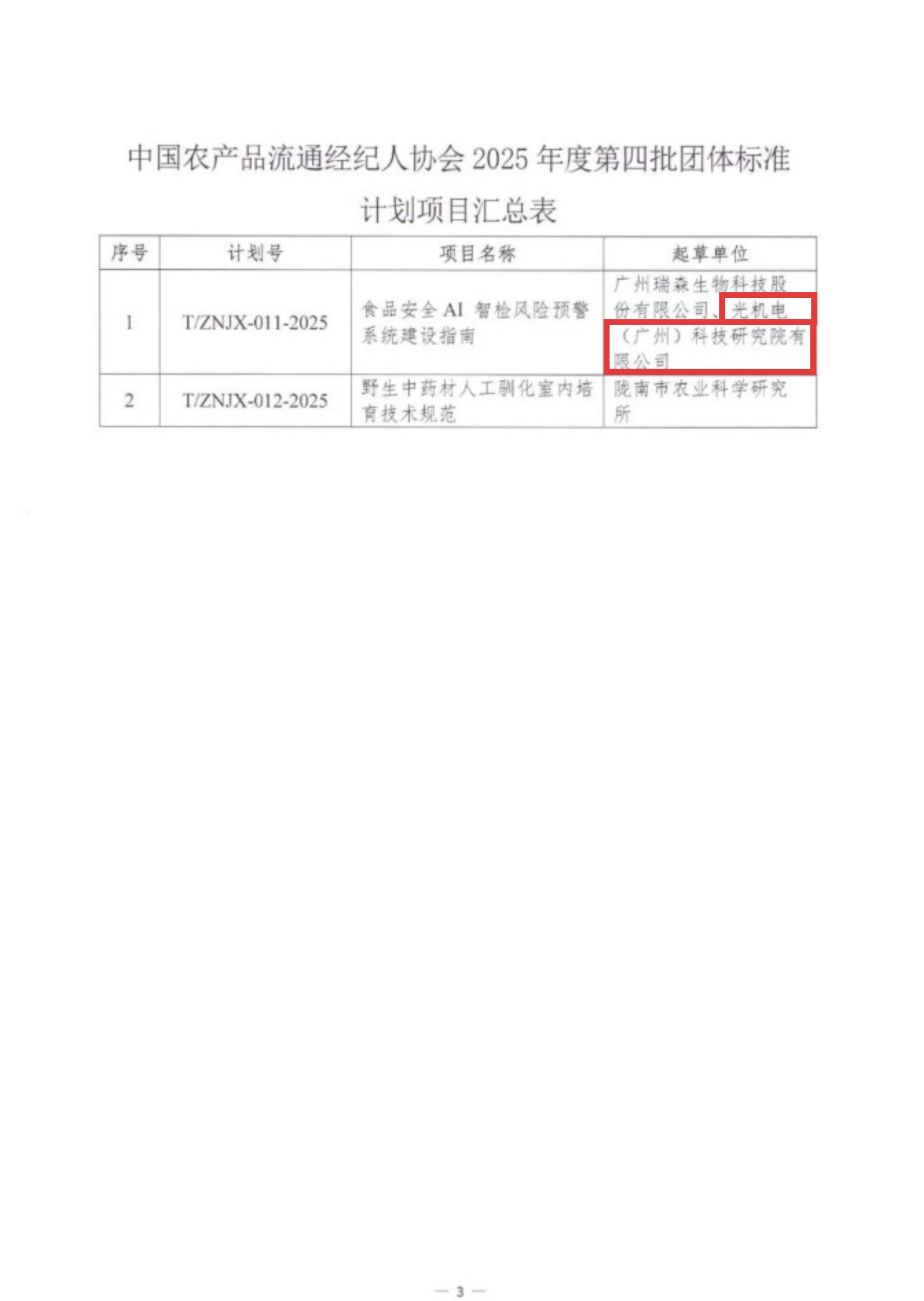 今年,光機(jī)電科技公司已獲得1項(xiàng)發(fā)明專利授權(quán),2項(xiàng)專利正在申請中,并且作為主要起草單位之一參與編制《食品安全AI智檢風(fēng)險預(yù)警系統(tǒng)建設(shè)指南》團(tuán)體標(biāo)準(zhǔn)(T/ZNJX-011-2025)。